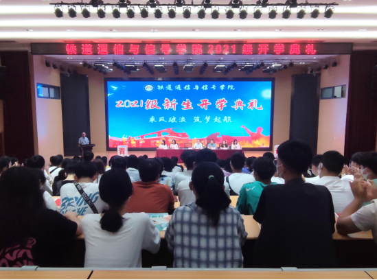 10月1日上午,铁道通信与信号学院2021级新生开学典礼于通达厅顺利举行。铁道通信与信号学院院长兼党总支书记朱志红,学院副院长罗明玉,楚天园丁奖获得者、国家三级教授、铁道信号自动控制专业李俊娥,院团委书记赵丽娟,学院办公室主任陈瑞,21级辅导员潘姗老师,各班班主任,教研室老师们以及学院2021级全体新生参加本次典礼。典礼由学院党总支副书记汤炜光主持。