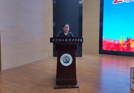 当庄严而又神圣的《义勇军进行曲》奏响时,全体与会人员庄严伫立,唱响国歌,深怀对祖国的无限热爱和崇高敬意,把爱国之情、奋斗之志融于激昂的歌声中。随后,学院院长朱志红开始致辞。
