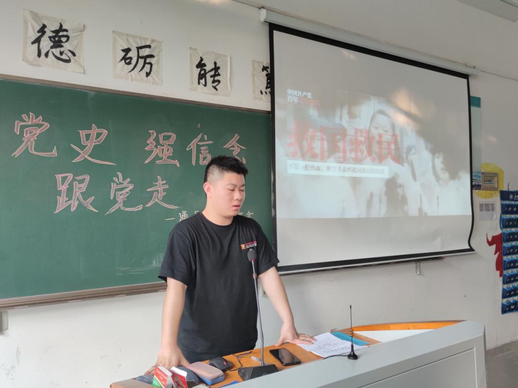 随后黄志远同学带领大家共同学习了党的100年光辉历程。从1921年中国共产党成立到新民主主义革命,从抗日战争到解放战争,从新中国成立到改革开放,从脱贫攻坚到全面建成小康社会,我们党带领全体中国人民一路奋斗、一路披荆斩棘才有了我们今天的幸福生活。大家从百年党史中不仅学到了党的奋斗历程,而且学到了革命、建设和改革的不易,更加明确了自己身上的重大使命。