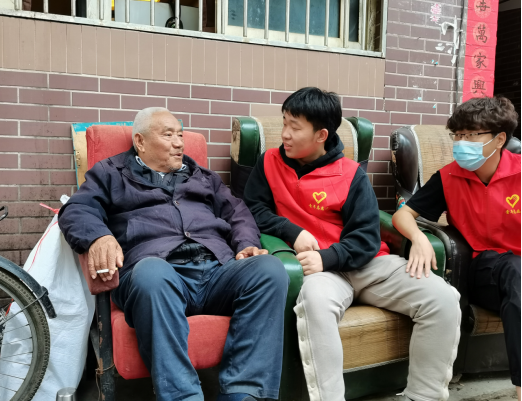 在活动期间,志愿者们面带微笑主动向老人们问好,志愿者们以饱满的热情、温和的态度与老人们聊天谈心。在聊天的过程中志愿者们自愿献上一首首嘹亮动听的红歌、只为让每位老人们都开开心心,他们一边笑着一边为我们鼓掌,用心聆听他们的话语,并用自身的实际行动回答他们所提的问题,陪伴他们。在欢声笑语中时间不知不觉的流动着此次志愿服务活动也圆满结束了,当要与老人们道别的时候,从每位志愿者们的眼里看出了他们对老人们的不舍和未曾说完的话语,一步三回头的对老人们说我们下次再来看您,给你们表演黄梅戏,一定保护好身体,等我们来。