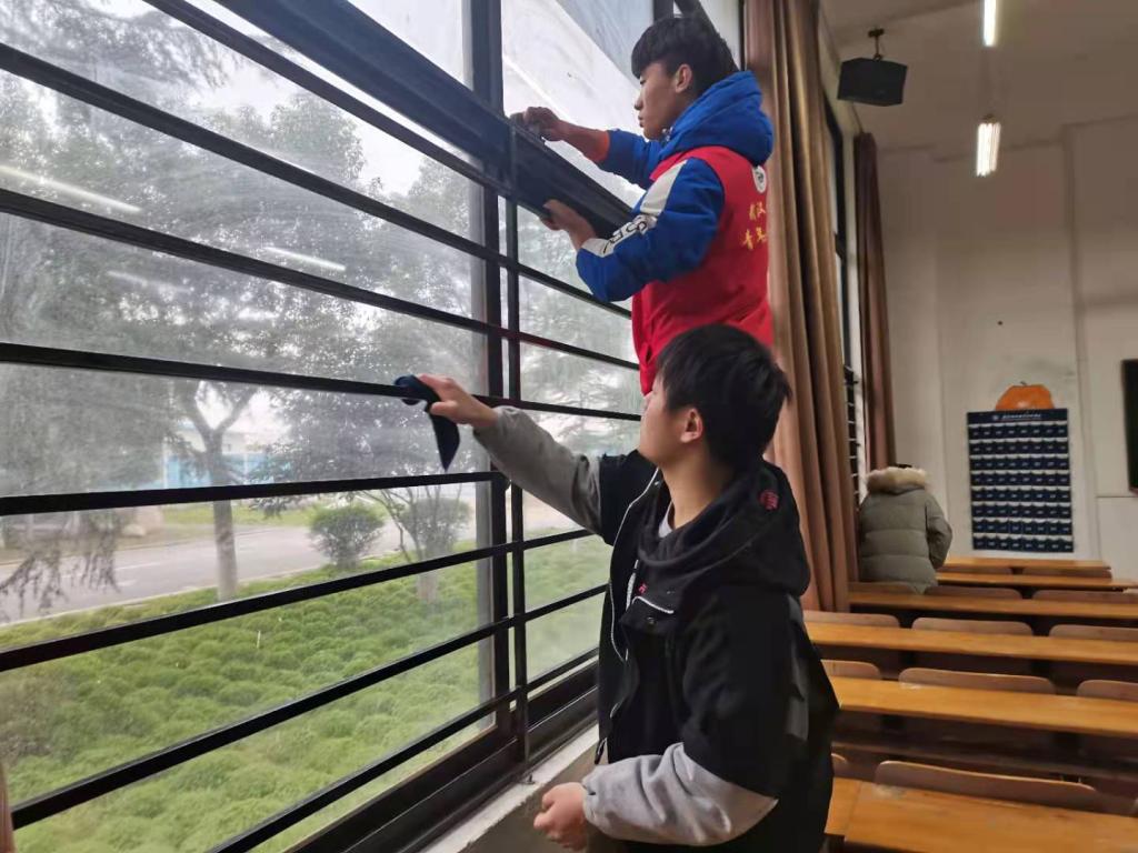 为贯彻落“崇尚劳动、尊重劳动”的精神,引导学生自己参加公益劳动,树立劳动观念和责任意识,落实《金年会jinnianhuicom学生参加公益劳动实施办法》,铁道通信与信号学院在3月7日-3月8日,通过新学期开学主题班会对全院在校学生大力开展劳动教育,并在劳动教育思想引领后,由学院勤工部组织发起了“全员劳动,净迎开学”的劳动实践活动,组织19级、20级学生开展教室、宿舍卫生大扫除,为迎接新学期开学、筑牢疫情防护墙提供保障。全院学生积极参与,一到宿舍便开始投入到开学大扫除中,开窗通风、宿舍整理、死角消毒、教室打扫,同学们分工明确,配合默契,在打扫过程中怕脏不怕累,不放过任何一个死角,在大家的共同努力下,校园环境焕然一新。