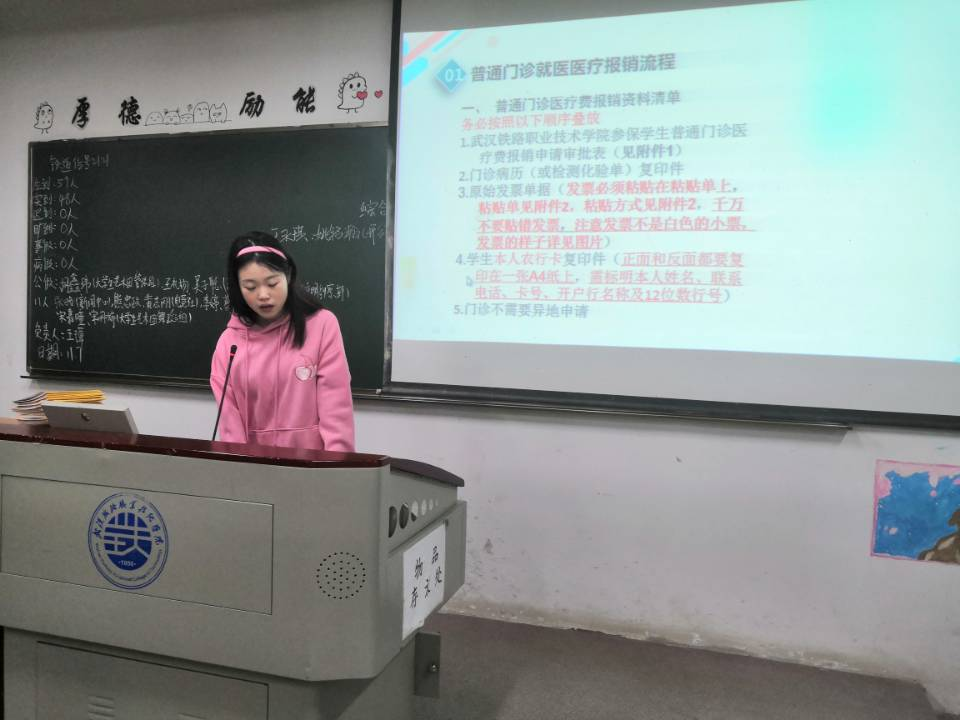 1月7号晚,铁道通信与信号学院学生会勤工助学部在明德楼面向学院21级新生开展了“大学生医疗报销”主题班会。