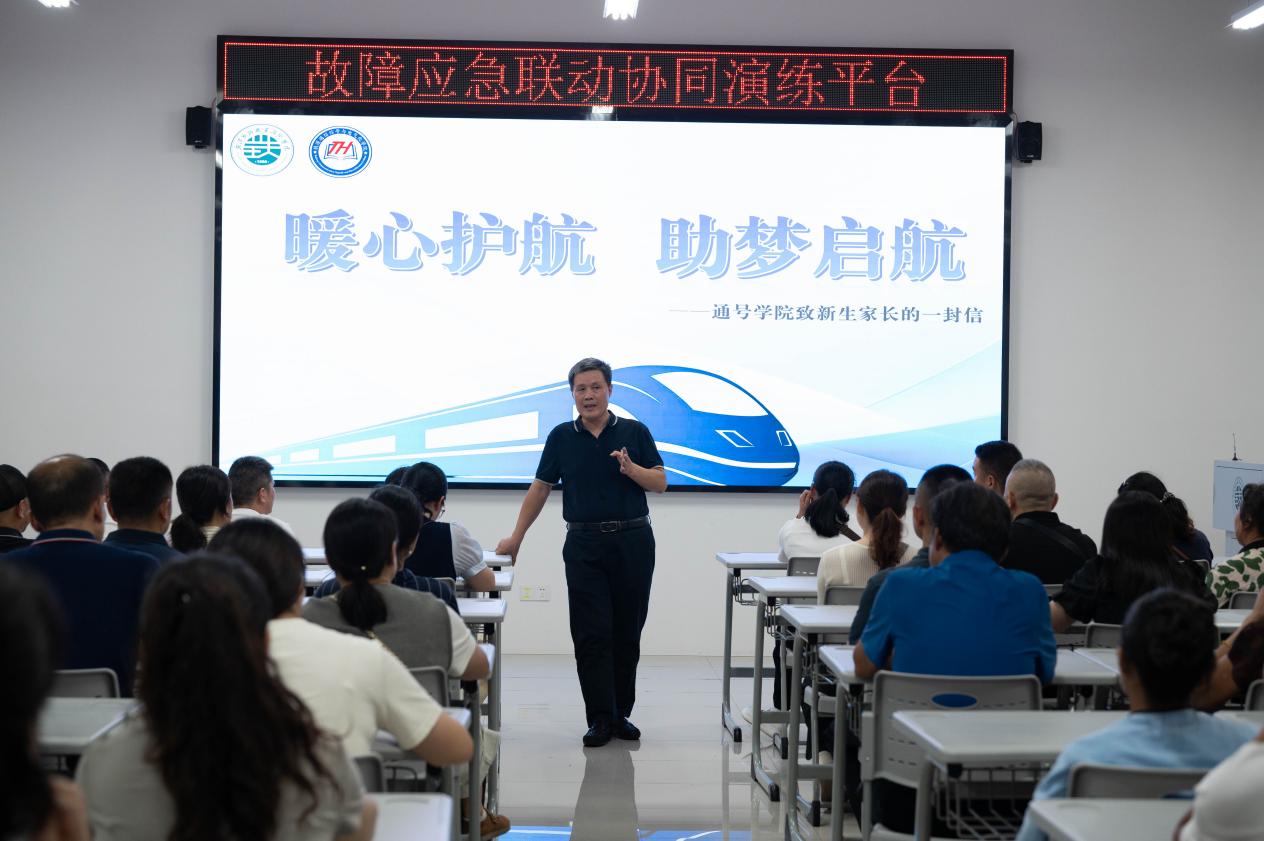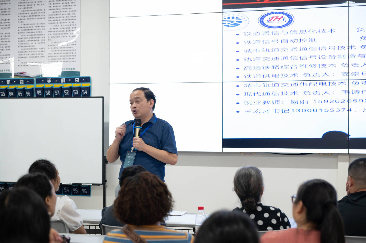 见面会伊始,朱志红院长代表学院全体师生,对远道而来的各位家长表示热烈欢迎和衷心感谢。他以学院办学历史为切入点,系统梳理了学院在多年发展中形成的专业特色与核心优势,从师资队伍的专业构成、教学科研成果的积累,到人才培养质量的稳步提升,全方位展现了学院的综合实力。朱院长重点聚焦铁道通信信号、电气化铁道技术两大核心专业,详细解读了课程设置逻辑——既涵盖扎实的理论基础课程,又包含丰富的实践实训内容,确保学生能“学懂、弄通、会用”;同时,他结合铁路行业发展趋势,介绍了专业对应的就业前景,从就业岗位类型、行业薪资水平到职业发展空间,让家长们清晰了解孩子未来的职业路径。朱院长强调,学院始终坚守立德树人根本任务,未来将通过家校密切配合,为学生营造“在校有专业指导、在家有关怀陪伴”的双重成长环境,助力学生实现学业进步与职业发展的双重突破。