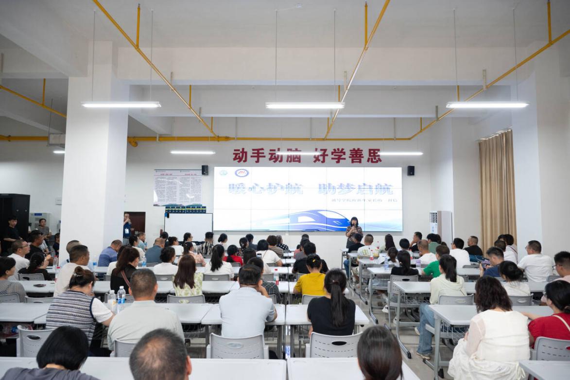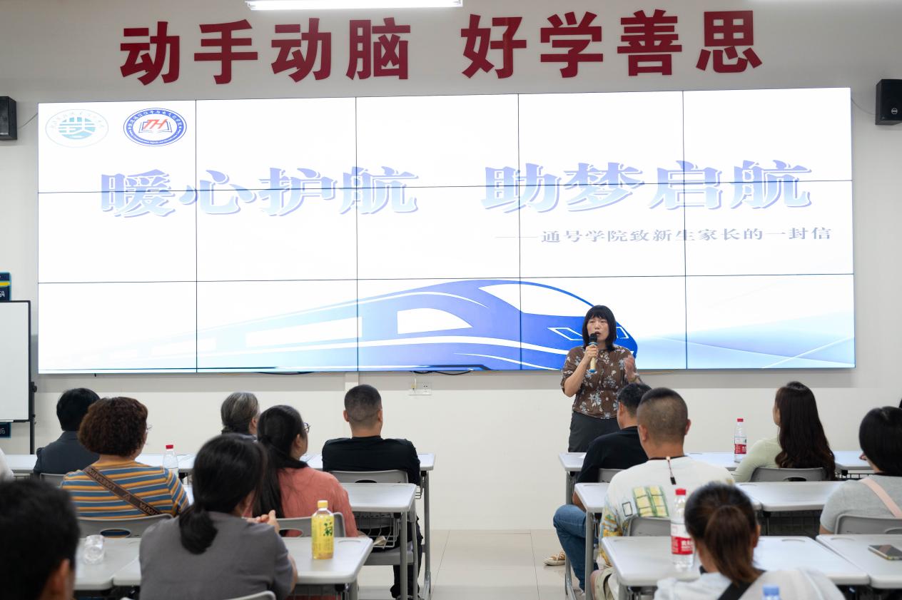 接下来,学院党总支副书记周著荣用三个关键词开篇,分别是“抱歉”“欢迎”和“感谢”。她首先向家长们表达歉意,“当前正值高温天气,各位家长的参会热情远超预期,实际到会人数比学院最初预计多了不少,可能在接待安排上存在不周之处,恳请大家谅解。”这份坦诚赢得了家长们的理解与认可。随后,周书记热烈欢迎各位家长的到来,她强调,“今天的相聚,让‘家校共育’从抽象理念落到了具象的互动中,也为学院做好今后的学生培育工作注入了莫大鼓励。”同时,她向家长们表达诚挚感谢,“大家选择金年会jinnianhuicom,本身就是对学院办学质量的极大信任,这份信任我们倍感珍视,也将转化为做好育人工作的动力。”在介绍学院学管工作时,周书记围绕“为党育人、为国育才”的宗旨,详细解读了学院“通号育心,筑强根基;多维育人,助力成才”的核心理念,以及“思想引领、学风建设、实践育人、社区服务”四位一体的协同育人体系。她提到,学院通过“学院-辅导员-专业教师-学生骨干”四级联动机制,全方位保障学生成长,从日常考勤管理到心理健康关怀,从学业困难帮扶到综合素质提升,为学生提供“全周期、全方位”的服务。讲话最后,周书记恳切地说:“孩子的成长是家校共同的责任,未来三年,学院将始终坚守育人理念,落实各项管理与服务举措。期待与各位家长紧密协作,共同见证孩子们从青涩新生,成长为铁路行业高素质技术技能人才,实现个人价值与职业理想的双重突破。”
