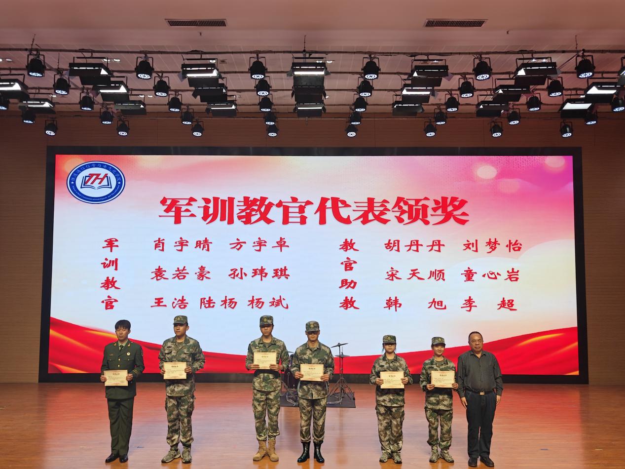 在激昂的颁奖乐曲中,大会进入表彰环节。优秀教官率先登台,接受荣誉,他们以严格的标准与温暖的守护,成为新生军训路上的引路人。