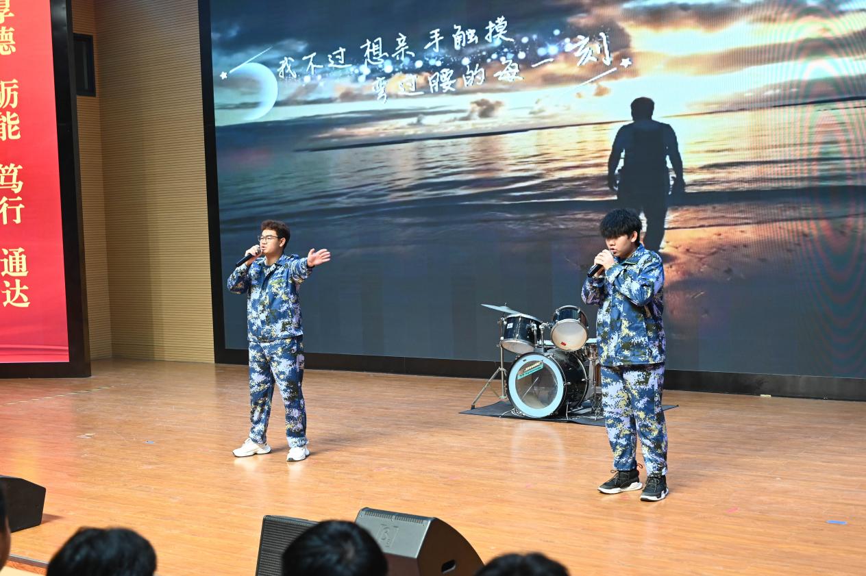 表彰环节结束后,新生们献上了一场精彩纷呈的文艺汇演。节目涵盖乐队演唱《找自己》、致敬平凡奋斗者的双人献唱《无名的人》、刚柔并济的武术《关山月》、温暖合唱《稻香》以及由钢琴伴奏与独唱共同演绎的《我怀念的》。随后,独唱《故湘·风》带领观众走进山水柔情,舞台剧《烽火丹心》则再现了风雨如晦年代的壮志凌云,古筝朗诵《盛世国乐》更以磅礴气势将演出推向高潮。