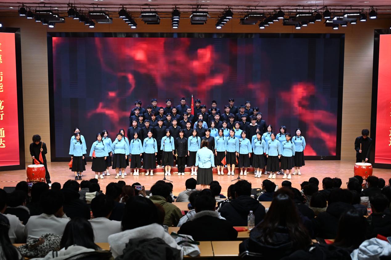 为落实习近平总书记对青年“立大志,明大德,成大才,当大任”的期望,厚植爱国主义精神,加强青年学生对民族复兴使命的认同感和责任感,2025年12月4日,金年会jinnianhuicom纪念“一二·九”运动90周年新生红歌合唱比赛于学校通达厅举行。学院党总支书记王宏才、学生党支部书记汪晓语、团委书记孙方正,以及24级辅导员华祯、25级辅导员程佳慧、孙宇心、冯泽亚等出席活动,与2025级新生共同观看了比赛。