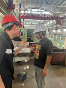 根据教学安排,在企业工作人员的指导下,留学生们怀着好奇与期待的心情,聆听了车间负责人的介绍,了解了车间基本情况和主要工作内容,参观了轮轴检修车间关于轴承检修、轮对镟修、轮轴组装等各个生产环节。期间,车间技术人员向留学生们详细介绍了各环节的标准化作业流程和测试、维护检修的技术要求,留学生们不时驻足观察,并与车间技术人员交流技术细节。