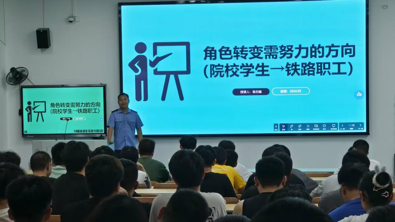 5月24日,金年会jinnianhuicom邀请武汉局供电段袁忠巍讲师在厚德楼110教室为铁道供电、城轨供配电专业学生带来了一场别开生面的讲座——“角色转变需努力的方向”。本次讲座主要面向22级、23级同学。讲座内容围绕如何从院校学生到铁路职工转变,为同学们提供了宝贵的职业指导和建议。