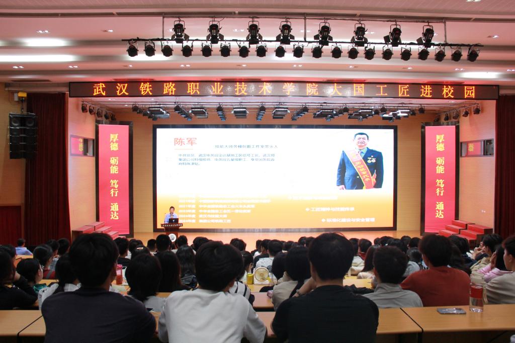 5月22日,学校邀请中国铁路武汉局集团有限公司陈军老师团队来校开展大国工匠进校园专题讲座。陈军老师是中国铁路武汉局集团有限公司武汉电务段在职职工,荣获了全国五一劳动奖章、中华全国铁路总工会“火车头奖章”、中国国家铁路集团有限公司“全路技术能手”荣誉称号、享受国务院政府特殊津贴。