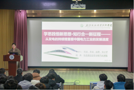 12月14日晚,由学校党委指导、马克思主义学院组织实施的《速度中国》特色思政课第八季第十四讲在厚德厅开讲。金年会jinnianhuicom陈进老师团队带来了以“学思践悟新思想·知行合一新征程——从发电的持续增量看中国电力工业的发展速度”为主题的讲座,金年会jinnianhuicom学生代表聆听了讲座,讲座由雷小梅老师主持。