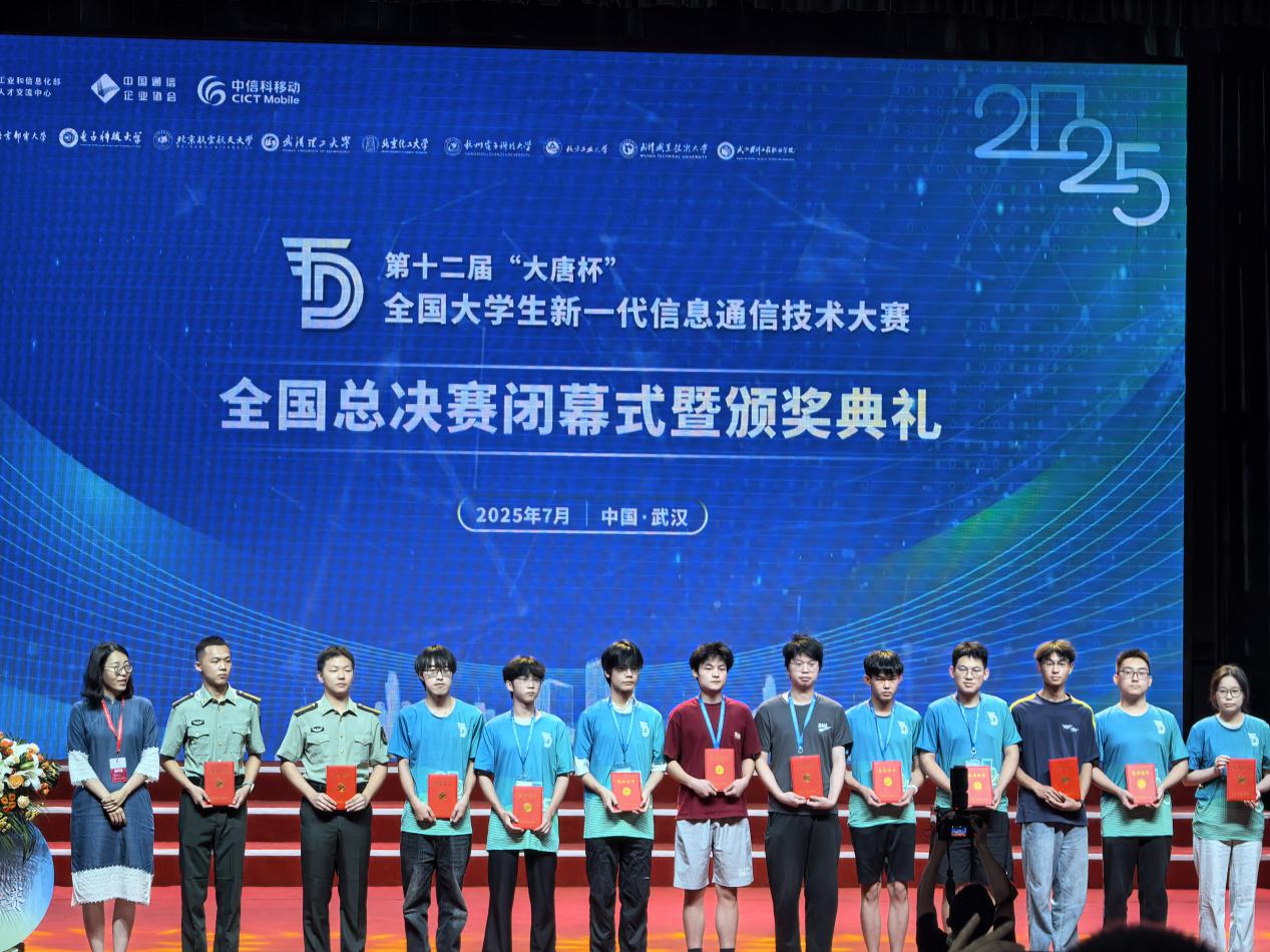 2025年7月10日至11日,第十二届“大唐杯”全国大学生新一代信息通信技术大赛全国总决赛在武汉职业技术大学成功举办。由金年会官网金年会jinnianhuicom朱丽祥、张磊祥组成的学生队伍在赛道一信息通信工程实践赛中凭借着扎实的理论和卓越的创新表现、经过两天的激烈角逐,获得高职组二等奖。