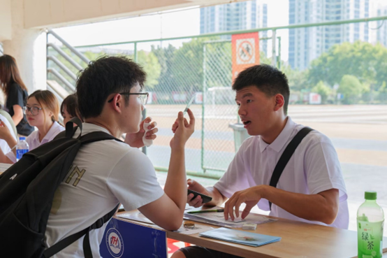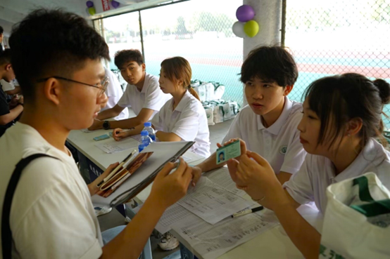 为了营造迎新氛围,学院前期精心布置了迎新场地,悬挂条幅、放置迎新展板、布置气球等,让新生第一时间感受到学院的热情。志愿者们摆放桌椅,在各报到流程点放置了醒目的标识,同时拍摄了从学校北门、南门进校流程的视频,方便学生有序完成报到。志愿者们以最饱满的热情和最真诚的态度迎接前来报到的学生和家长,他们接过新生的行李,带领他们到达报到地点,并在班主任助理的引导下,有序地核对信息、领取校园卡和宿舍钥匙,完成报到流程。随后,班助为每位新生发放了学校准备的新生大礼包以及学院精心制作的“未来车票”,车票承载着学院对新生未来三年的期盼,并附有学院领导和23级所有辅导员、班主任老师的电话,由此守护新生安全,展现了学院的温暖和热情。