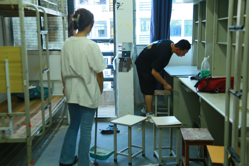活动开始前,汪晓语老师集合队伍,向大家强调纪律和签到签退问题。并让学生负责人按照事先安排,组织同学们到达指定寝室,保证活动的质量和效率。同学们个个挽起了袖子,精神饱满,干劲十足,对新生即将入住的寝室内进行打扫,并仔细排查了寝室内电灯开关、桌椅板凳、水龙头等物品的损坏情况及其他安全隐患。打扫完毕后,活动负责人对打扫成果进行验收,确保新生寝室环境的干净整洁,并组织志愿者有序离开。