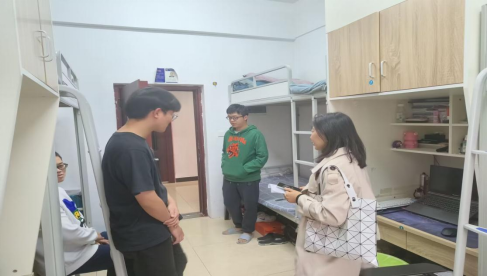 期间班主任进入宿舍和大家谈心谈话,并指导大家对宿舍内务进行清扫和整理,保持宿舍的干净和整洁。