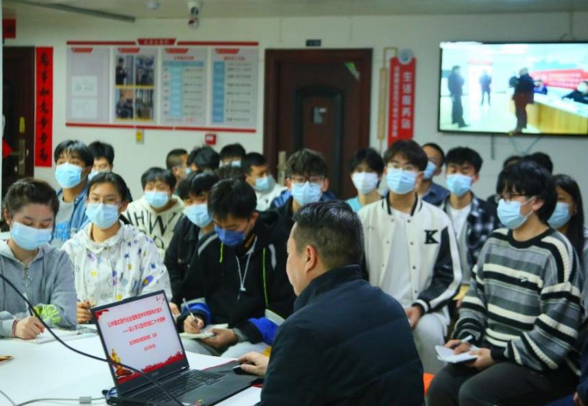 3月7日晚,学院特邀党的二十大精神学校党委宣讲团成员、马克思主义学院王彬教授来到金年会官网“一站式”学生社区开展二十大精神宣讲。本次活动由金年会官网党总支书记王宏才主持,分团委书记张馨月、辅导员王月老师以及21级、22级部分团支书代表参与本次活动。