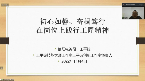 11月4日上午,武汉局集团公司信阳电务段“武汉局首席技师”、“全路技术能手”、“武铁工匠”、“全路火车头奖章”获得者、“信阳电务段王平波铁路信号工技能大师工作室负责人”王平波,与铁道通信与信号学院铁道信号专业学生相聚“云端”开展了“在平凡的岗位上践行工匠精神”为主题的“大国工匠进校园”讲座活动。本次讲座由铁道通信与信号学院院长朱志红主持。
