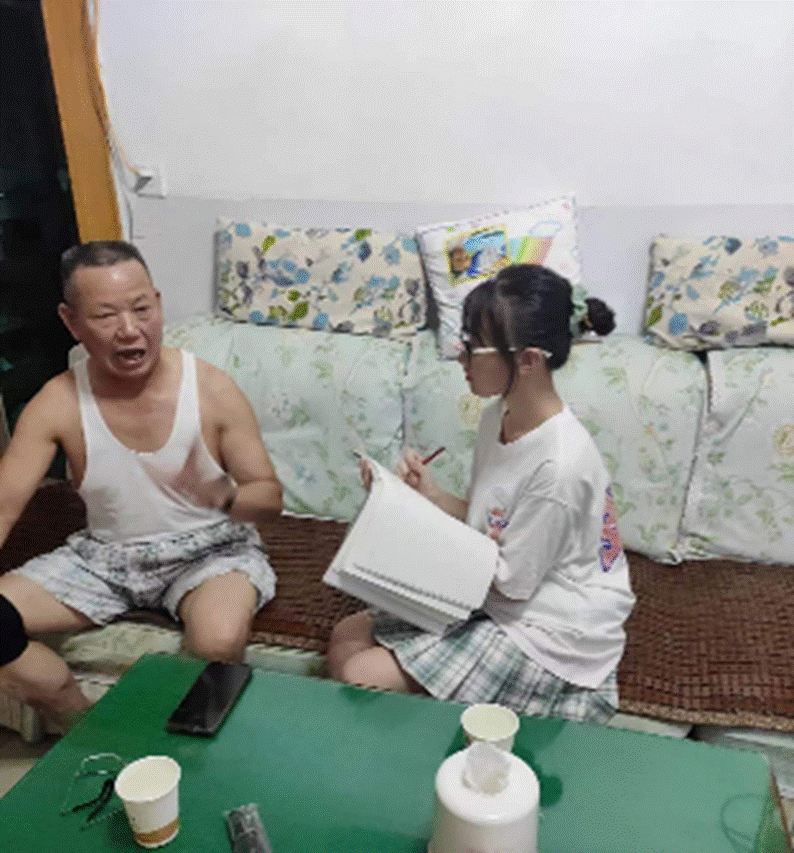 7月16日晚,铁道通信与信号学院“红色铁路文化寻访团”成员游云,来到湖北麻城铁路小区寻访铁道老兵田秀志爷爷。