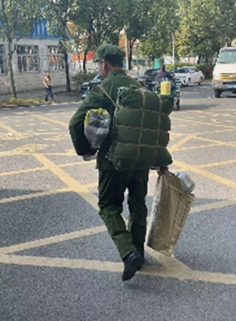 图为田爷爷身穿46年前军装到博物馆捐赠物品