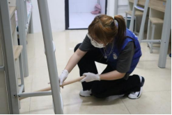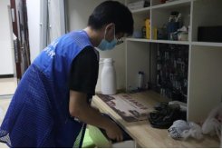 为了方便返校同学们入住,在征得相关同学同意后,志愿者将返校同学的被褥提前晾晒,将日常用品放在对应隔离宿舍。为了创造一个干净、整洁的宿舍环境,志愿者们提前三天将隔离宿舍开窗通风,并将桌椅、床板、地面、卫生间等提前打扫干净。为了方便返校同学杀菌消毒,志愿者们提前将学校发放的口罩、消毒液、消毒水等防疫物资提前放在隔离宿舍。