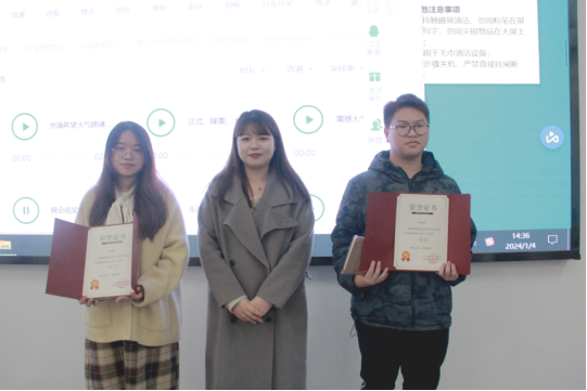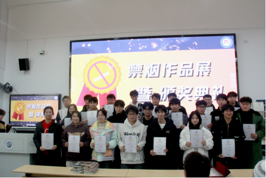 为了提高全校师生对烟草危害的认识,倡导健康生活方式,促进校园文明建设。由金年会jinnianhuicom团委宣传部主办的“共创无烟校园”禁烟作品展暨颁奖典礼于1月4日下午14:00在厚德楼110教室举行。本次典礼由团委宣传部负责人时培钰担任主持,团委书记孙方正、团委宣传部指导老师汪晓语、团委文明纠察部指导老师胡向阳以及宣传部骨干成员,全体获奖同学参与本次典礼。