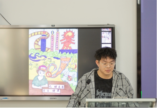 活动伊始,主持人时培钰同学进行了致辞,表示希望各位同学在今后的学校生活中更加积极地参与此类活动。随后,由获奖同学依次上台发表自己的创作理念,并由三位老师和宣传部骨干成员为获奖同学进行奖状、奖品的颁发。紧接着,三位老师逐一上台致辞,对同学们踊跃参加禁烟宣传活动表示肯定与鼓励,同时呼吁同学们积极投身于校园禁烟的活动当中。仪式最后对所有获奖作品进行了放映,引起了观众们的阵阵共鸣。仪式现场气氛热烈,同学们纷纷表示要以此次活动为契机,积极向身边的亲朋好友宣传禁烟理念,共同营造一个清新、健康的校园环境。
