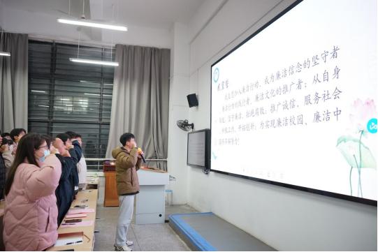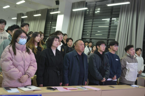 会议伊始,全体参会人员起立,奏唱国歌。周著荣书记宣读了《金年会jinnianhuicom第七届团学骨干任命决定》,对上一届的团学组织的工作进行总结,并代表学院向过去一年为团学组织工作付出辛勤汗水和艰辛努力的学生骨干表示衷心的感谢。随后,周书记对新一届的团学组织工作进行了规划和展望,呼吁大家为更好的明天贡献自己的青春力量。紧接着,以第六届团委副书记徐嘉帅、主席团成员陈飞扬为代表的多位团学骨干进行发言,各自讲述自己在团学生活中的收获,为学弟学妹们传授经验。第七届学院团委副书记夏梦玺、主席团成员赵帅代表新一届团学骨干作出承诺,表示将尽快地进入新的角色,端正自身态度,营造良好团学氛围。最后,全体参会人员在主持人的带领下进行了廉洁宣誓。学院党总支书记王宏才结合自身经历谈及团学工作该如何落在小处、落在实处,希望同学们能在学院与老师的帮助下取得自身长足发展,认真对待学生工作,做好学生与老师之间的桥梁和纽带,在今后的工作中焕发新的活力与光彩。