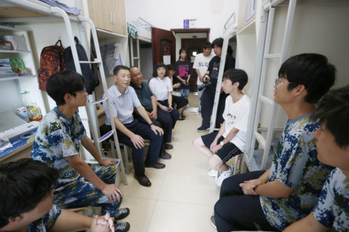走访过程中,程校长问了同学们三个问题,即选择本校的原因、自身优缺点以及进入大学阶段后的成长,大家争相表达自己的所思所感。听了大家的回答,程校长进一步从三个方面对同学们提出期望:一是要注重身体健康,在刻苦学习专业知识的同时要多参与课外活动,在校期间要培养一项喜欢的运动;二是要树立正确的价值观,坚定理想信念,做新时代青年;三是要学好理论知识,掌握专业技能,做好人生规划,将个人理想融入祖国建设,为学校增光添彩。