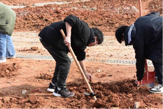 活动前期,曾担任藏龙岛产业园工会主席的常玉翠老师表示,希望同学们珍惜本次活动机会,积极参与,努力学习相关农业知识和技术,培养创新意识和实践能力,为国家的发展贡献自己的力量。首先,常老师为同学们介绍并亲自示范如何工具,方便同学们更好地了解如何开垦。在场老师和同学们在了解如何开垦荒地后,纷纷领取劳动工具,师生分工配合、团结协作,保质保量地完成了此次开垦荒地的工作。把田间当教室、把实物当教具、让学生处处学、处处动的教学方式在学校推广开来,在活动中同学们感悟到耕读文化的存在与发展,激发了同学们的劳动热情。