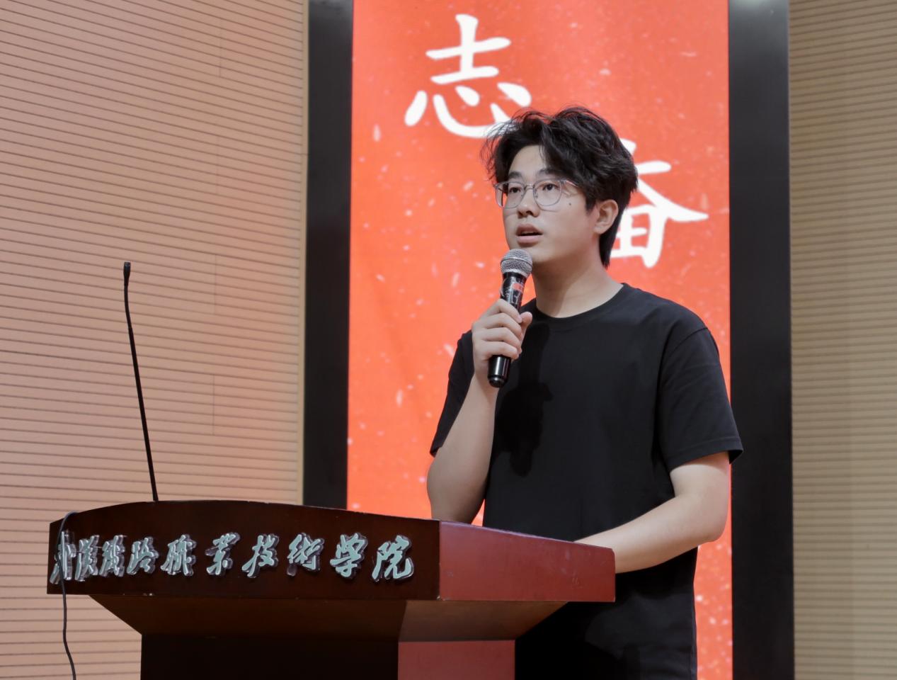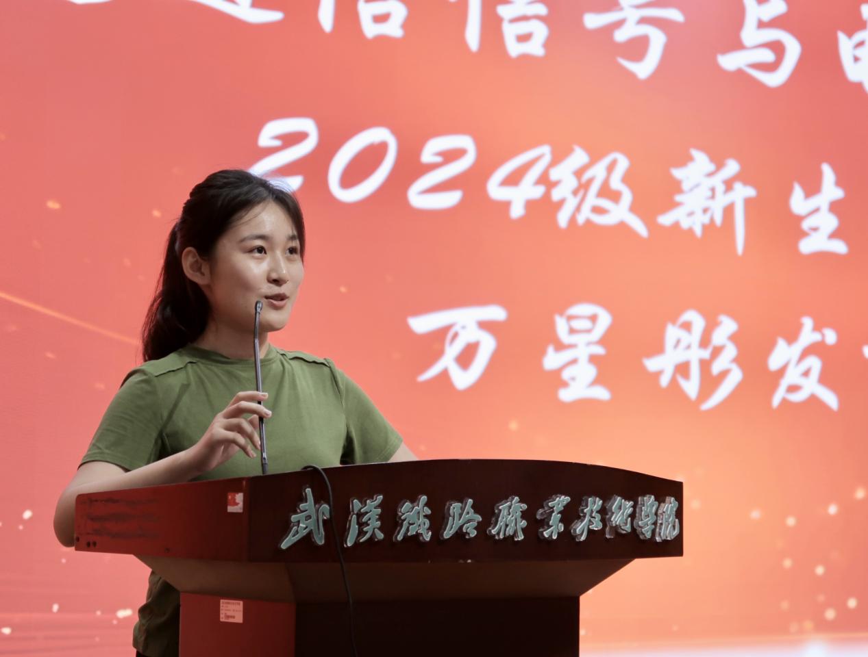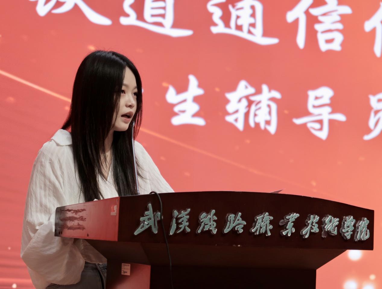 2022 级学生代表古丽努尔·麦麦提艾力和 2023 级学生代表蒋兴文分别分享了自己的经历和成长感悟,鼓励同学们勇敢面对挫折,积极参与志愿服务,实现自我成长。2024 级新生代表万星彤表达了进入铁院的自豪与激动,以及对未来学习和生活的规划。