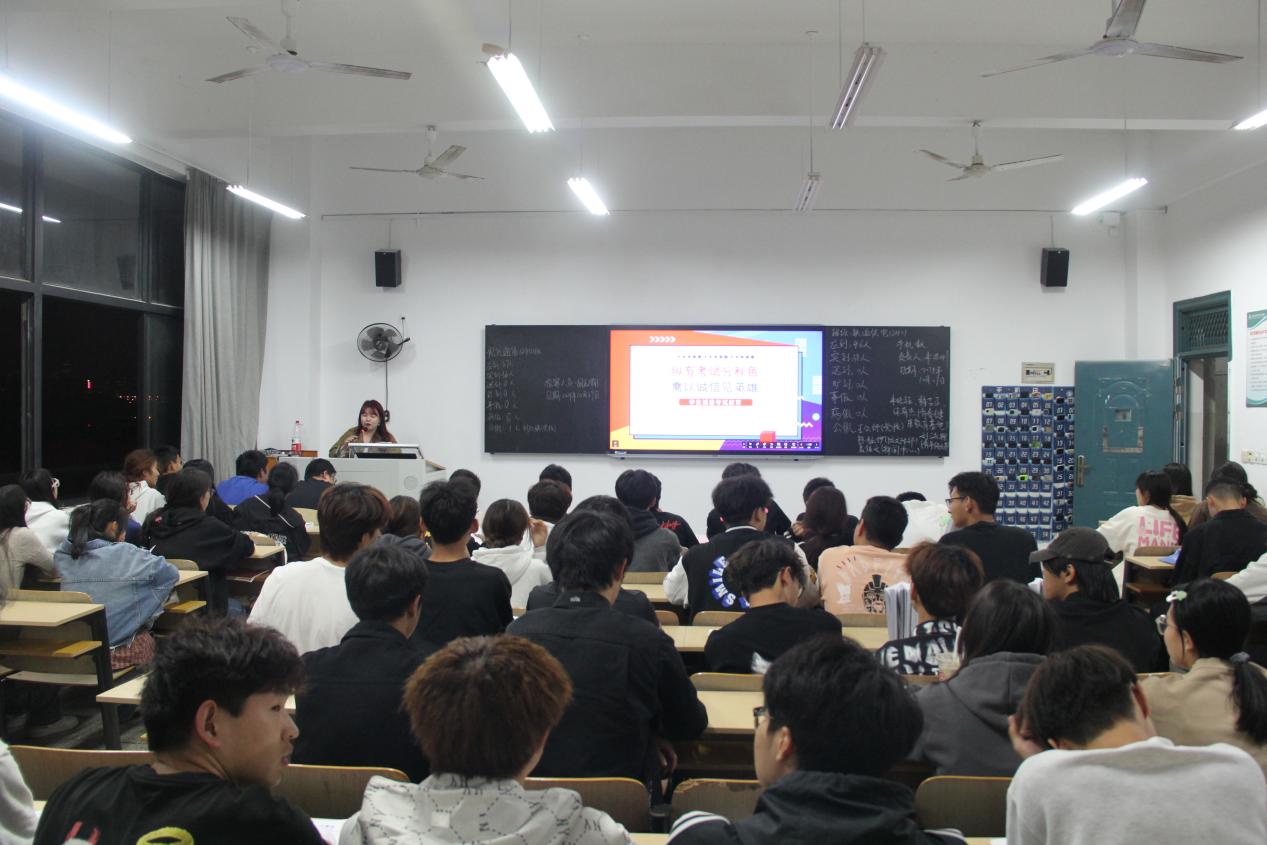 开考前,学院于10月29日晚自习教室集中开展2024级新生入学教育考试诚信教育,学院全体辅导员进班宣讲,从明确考生入场时间、携带物品规定到考试过程行为准则,都事无巨细地为大一新生们进行强调和讲解。同时对考试进行详细说明,涵盖试卷随机生成、考试平台操作、时间限制及舞弊处理等,强调考风考纪,确保新生入学考试有序进行。