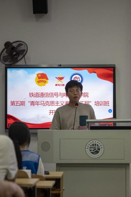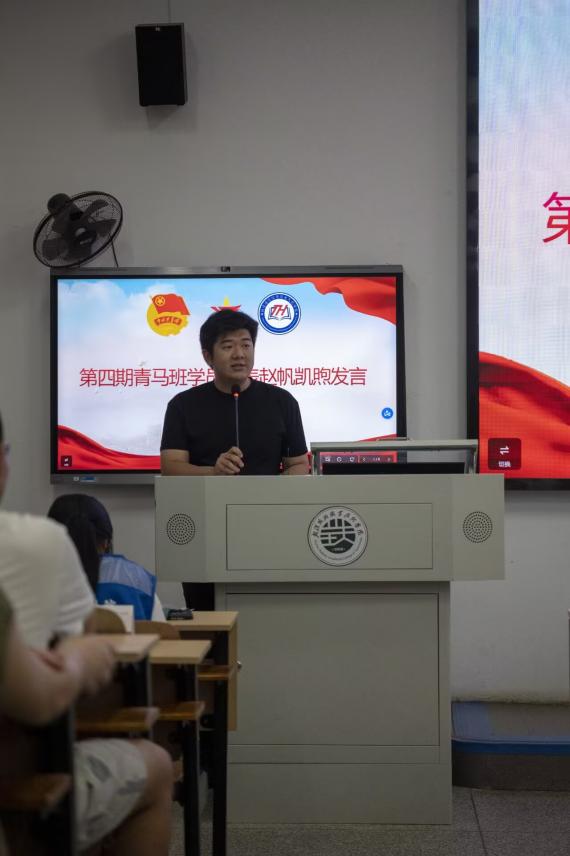 开班式上,孙方正老师发表讲话。他强调,全体青马班学员要深入学习贯彻习近平新时代中国特色社会主义思想,在学思践悟中坚定理想信念,在奋发有为中践行初心使命,努力成为德才兼备、全面发展的新时代青年马克思主义者。随后,第四期优秀学员代表赵帆凯煦发言,并鼓励新一期学员坚定信仰、勇担使命。