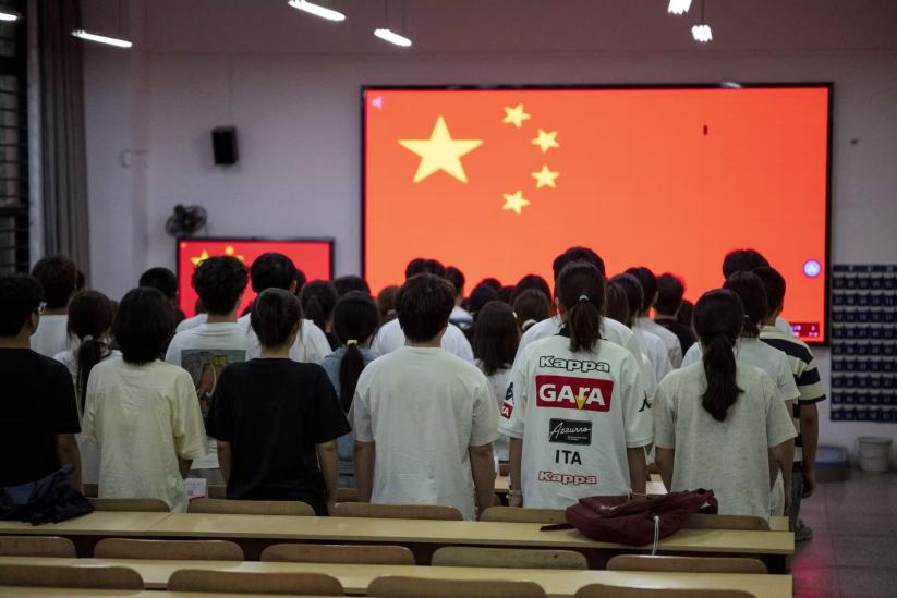 在庄严的国歌声中,开班仪式正式启动,全体师生肃立齐唱。