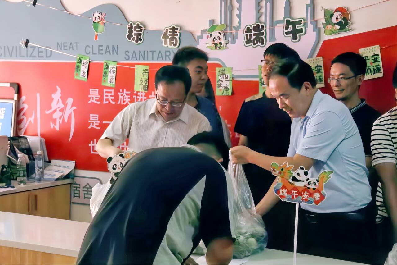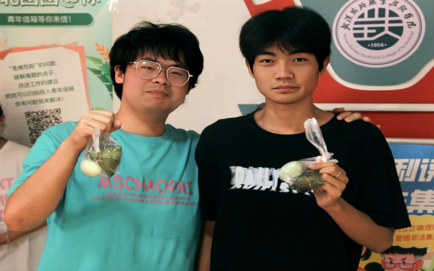 在学生社区,粽子发放工作安排有序,秩序井然,同学们领到来自学校的端午问候,现场一片温馨热闹的景象。彭校长一行与8栋430宿舍全体同学共进午餐,席间详细倾听同学们的在校感受及成长经历。来自铁道供电32401班的秦同学讲述了他的成长故事,来自四川的他从小生长在农村,来到武汉铁院后,他深刻感受到学校、学院对贫困生的关心爱护。作为团支部书记,他有信心带领班级同学团结向上,为就业打好坚实基础。领导们鼓励他放下思想包袱,学校始终是其坚强后盾。