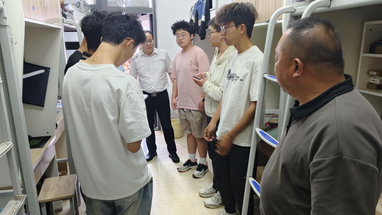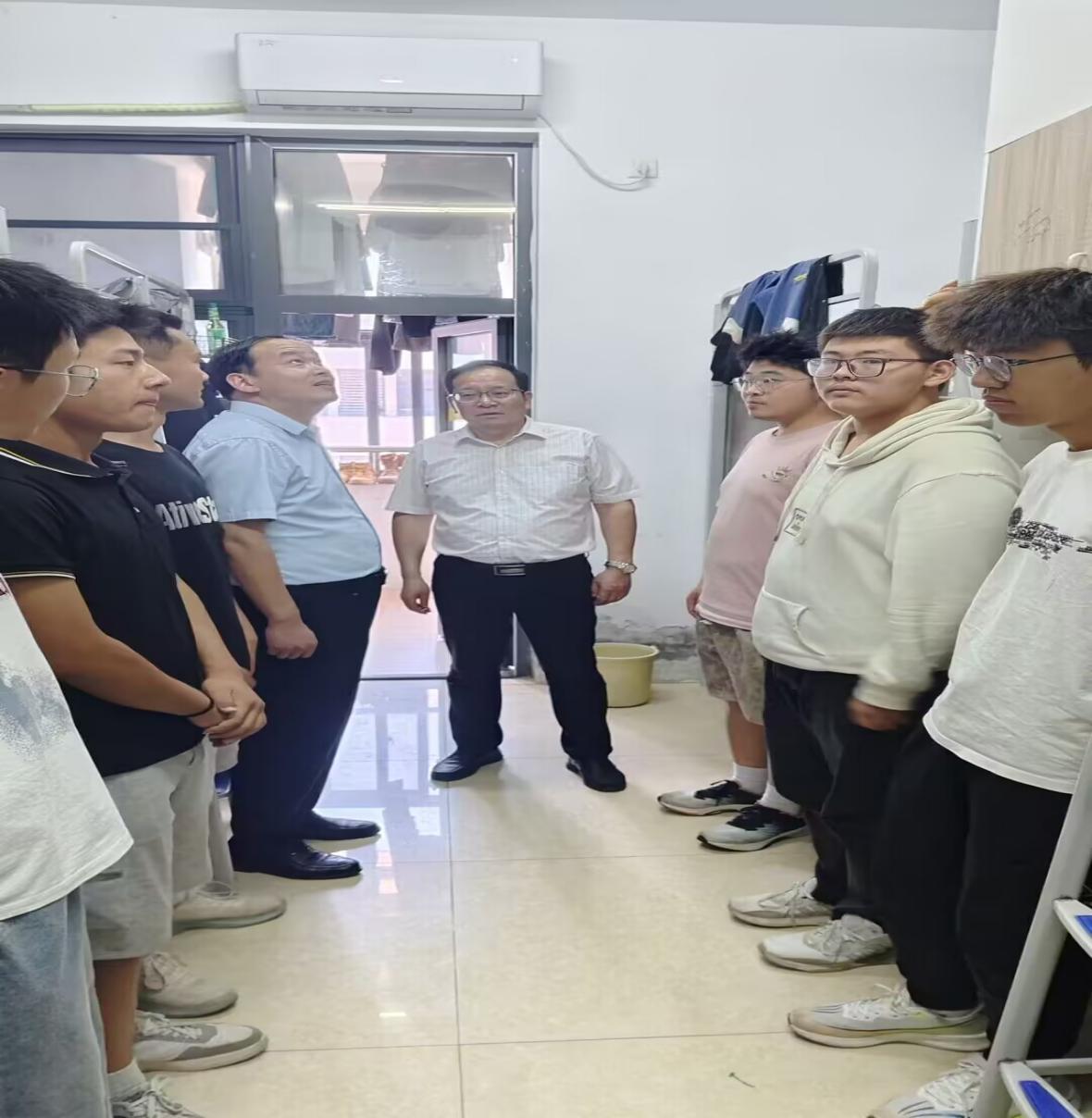 朱院长勉励同学们珍惜校园时光,将困难转化为奋进动力;王书记强调,整洁的宿舍是精神面貌的体现,要继续保持优良作风。该生及宿舍成员深受感动,表示定将铭记教诲,以优异成绩回报学校关爱。