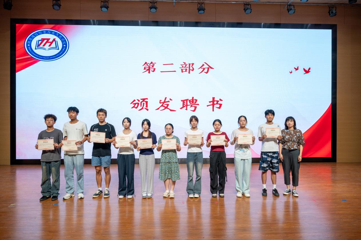 随后,会议进入聘书颁发环节。学院党总支书记王宏才为2024级优秀班助及部分2025级新生班助颁发聘书,这份聘书不仅是对班助们能力的认可,更是对他们未来工作的期许。接过聘书的班助们纷纷表示,将以饱满的热情履行职责,不辜负学院与新生的信任。 王宏才书记在讲话中围绕 “责任与担当” 展开深入论述。他指出,班助工作既是服务新生、助力成长的奉献过程,也是锤炼能力、实现自我提升的宝贵契机。他对班助们提出两点要求:一是要树立 “以学生为中心” 的理念,在关注新生学习生活需求、解决实际困难的同时,更要注重引导新生树立正确的价值观与成长观;二是要主动融入学院发展大局,积极统筹班级资源,协同推进班级和谐建设,为学院优良学风、校风的培育贡献青春力量。