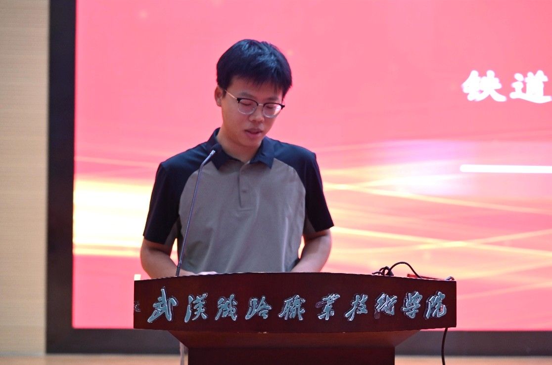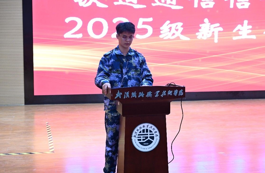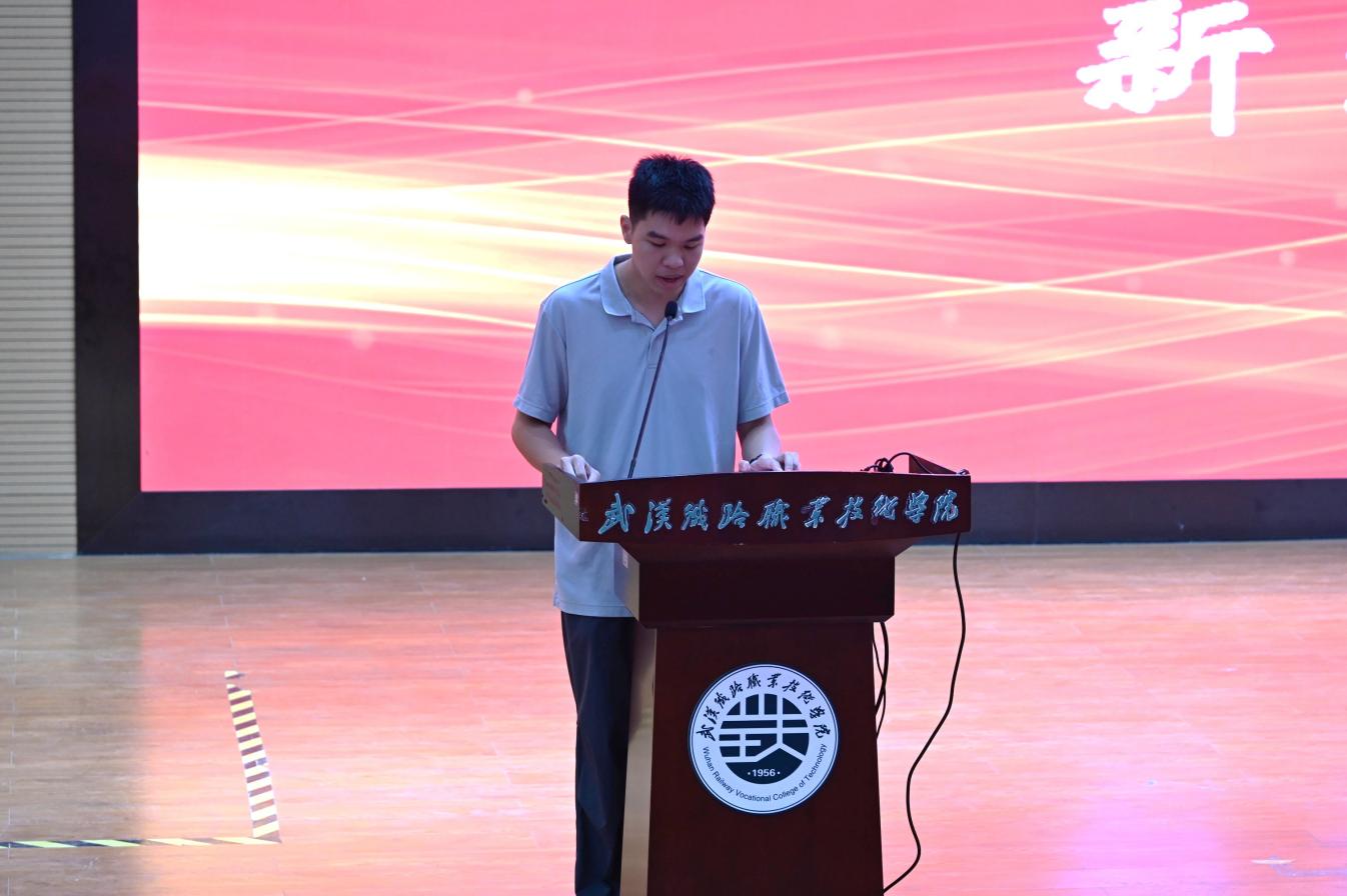 来自城轨供配电12502班的冯浩轩同学作为新生代表上台发言。他满怀憧憬地说:“能够来到金年会jinnianhuicom,加入金年会jinnianhuicom这个大家庭,我们深感荣幸。未来几年,我们定会以‘厚德、砺能、笃行、通达’为准则,认真学习专业知识,积极提升综合能力,努力成为有理想、有本领、有担当的铁路行业后备人才,不辜负老师和家长的期望。”