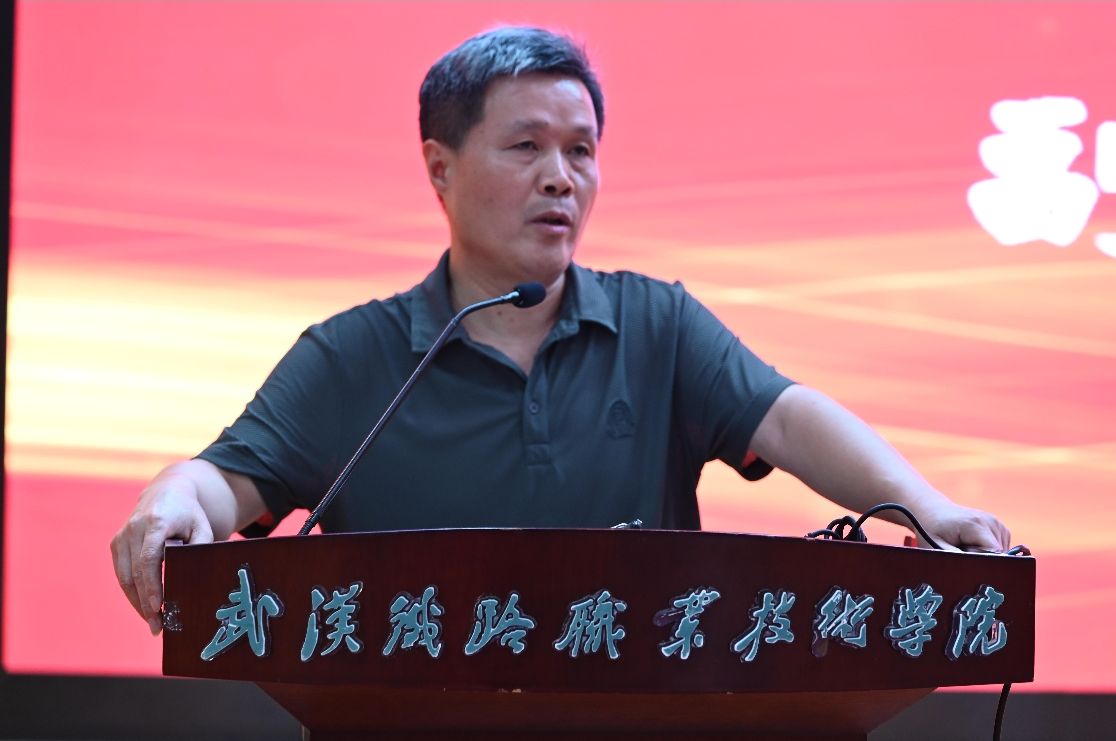 随后,学院副院长罗明玉、党总支副书记周著荣先后上台讲话,从不同维度为新生送上成长指引。学院副院长罗明玉围绕“学业适应与能力提升”核心主题,结合学院专业兼具理论深度与实践刚需的学习特点,为新生们给出了针对性指导。他建议新生快速完成高中到大学的学习节奏适配与转换,摒弃被动接收知识的惯性,牢牢把握“理论筑基、实践赋能”的融合学习方法,在学用结合中夯实专业能力,为后续职业发展筑牢根基。
