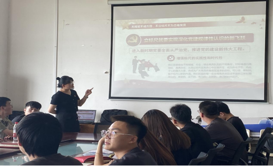 2021年6月24日14:00,铁道通信与信号学院学生党支部对2021年毕业生党员开展了“三个一”活动。支部老师给每位毕业生党员派发了红色礼包、邀请介绍人老师与学生党员进行一对一谈话,学生党支部书记刘珊珊老师为毕业生党员上了临别党课,党课主题为“立标尺 划底线 树形象——做新时代合格共产党员”。部分积极分子代表列席党课。