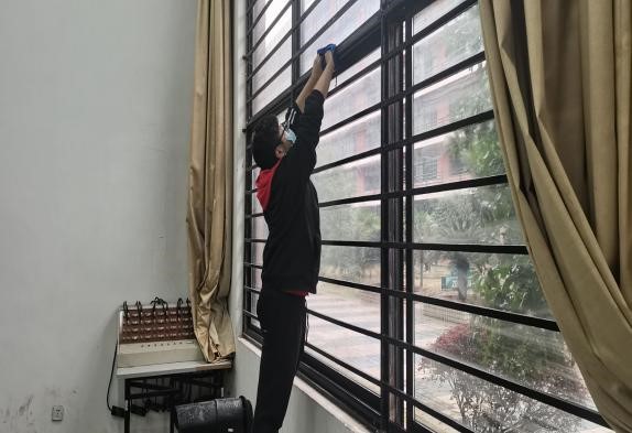 本次活动采取线上报名和宣传爱国卫生知识、线下开展实践劳动的形式,学干并举,积极分子们对学院实训室、室外训练场地进行了清洁打扫和维护,同时协助老师们开展办公室大扫除,彻底清除积存杂物、废弃物、卫生死角,保持校园整体环境干净、整洁。