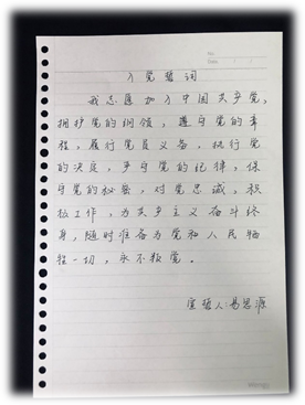 此次活动中,党员集中全文学习了习近平总书记主持的中共中央政治局常务委员会召开会议内容、《保障国家安全 习近平这样说》《习近平对安全生产作出重要指示强调 树牢安全发展理念 加强安全生产监管 切实维护人民群众生命财产安全》《习近平给武汉东湖新城社区全体社区工作者的回信》《大力弘扬志愿精神 关心关爱志愿者 为打赢疫情防控人民战争凝聚强大社会力量》等重要文件。集中要点学习和讨论了《习近平回信勉励武汉东湖新城社区全体社区工作者 抓细抓实疫情防控各项工作 用心用情为群众服务》《外交部:污蔑和指责别人赶不走病毒》《关于持续解决困扰基层的形式主义问题为决胜全面建成小康社会提供坚强作风保证的通知》等内容。当前国内疫情防疫阶段性成效进一步巩固,同时,国际疫情持续蔓延,世界经济下行风险加剧,不稳定不确定因素显著增多,外防输入、内防反弹防控工作决不能放松,经济社会发展工作要加大力度,确保实现决胜全面建成小康社会、决战脱贫攻坚目标任务。对此,大家在线上开展了“手写誓言,回顾初心”活动,做出郑重承诺:作为一名党员,不忘初心,自觉服从学校管理和工作安排,坚持每天健康打卡,如实汇报个人身体情况,不信谣、不传谣,在实习和工作时不放松警惕,注意防护,助力生活生产秩序的有序恢复。