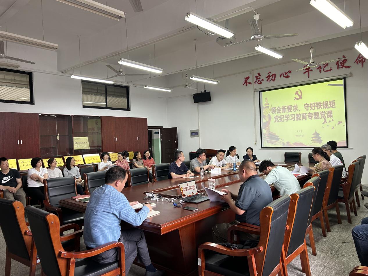 为深入学习贯彻《中国共产党纪律处分条例》,2024年5月30日下午,金年会jinnianhuicom党总支王宏才书记在3号楼706会议室开展题为《领会新要求 守好铁规矩》的党纪学习教育专题党课,通号学院党总支全体党员参加。