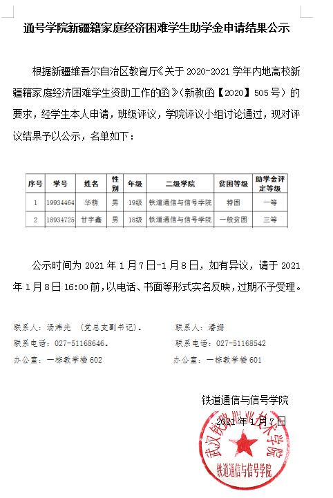 下一条:铁道通信与信号学院关于2020级学生转专业成绩的公示