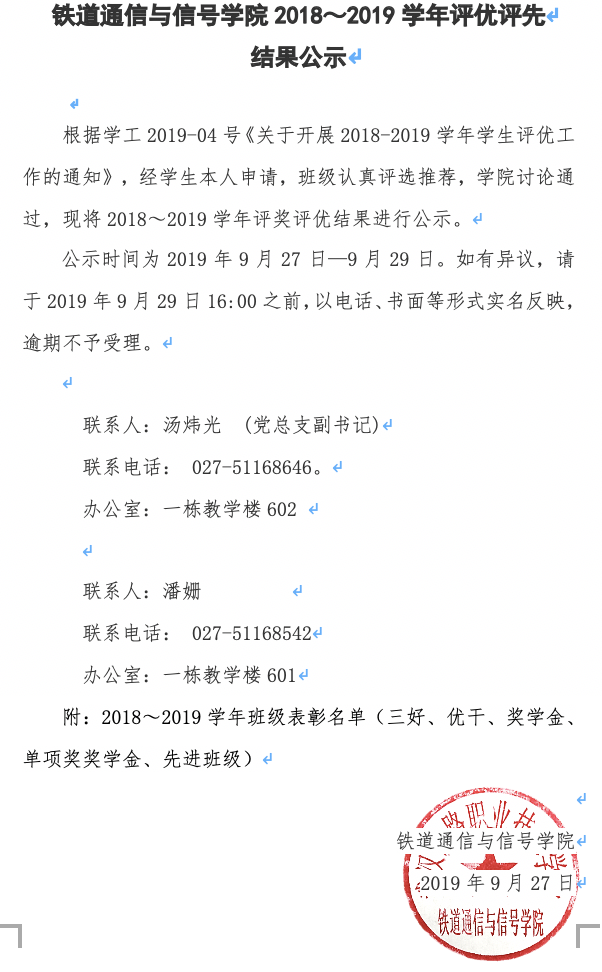 2018-2019学年优秀个人、班级表彰名单