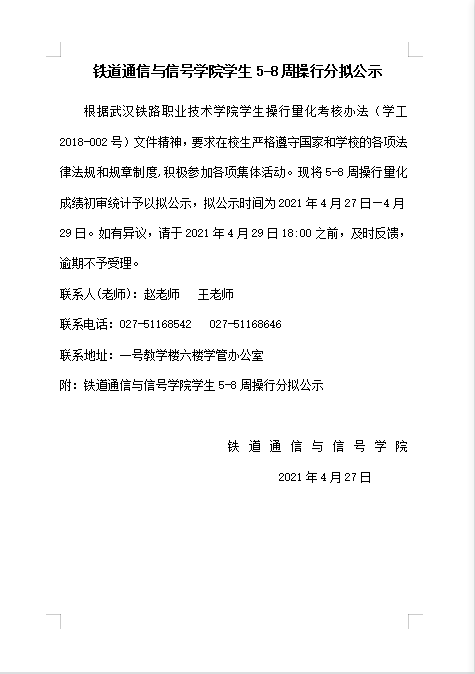 上一条:铁道通信与信号学院学生5-8周操行分公示