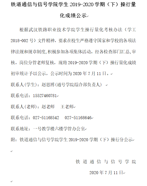 上一条:铁道通信与信号学院2019-2020学年春季学期公益劳动工时公示