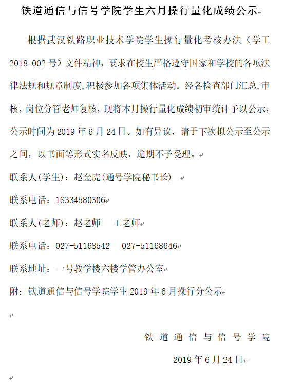 下一条:铁道通信与信号学院2019年6月份操行分拟公示