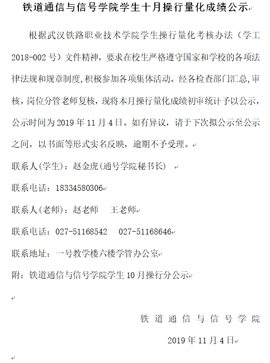 铁道通信与信号学院2019年10月份操行分公示(1).xlsx