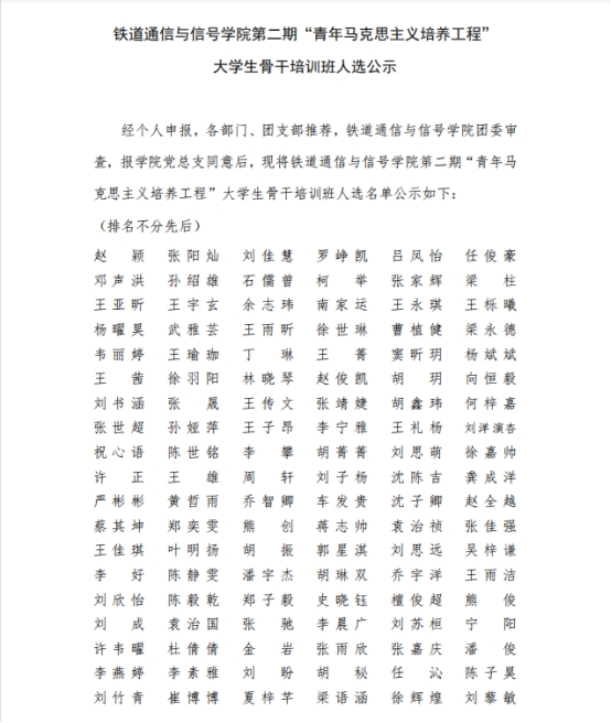 铁道通信与信号学院第二期青马班人选公示.pdf